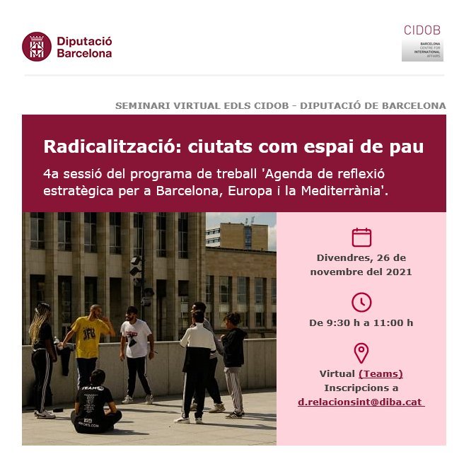 This seminar will expose the main reasons why cities represent the first place in importance to prevent violent radicalisation. From the different experiences that are implemented at local level in this area, they will discuss the challenges and the limits posed by the design, the implementation, and the evaluation of these policies. Working language: Spanish.